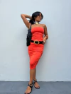 Saia longuete forrada de cetim, cós no lugar, com elástisco na cintura e levemente evasê na barra.