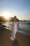 Vestido longuete confeccionado em viscose acetinada, forrado, busto trinangular com recorte abaixo e alças para amarração na parte de trás. Possui decote nas costas e zíper invisivel na parte de trás da saia. Modelagem slip dress, caimento leve ao corpo. Peça única, super fácil na hora de fazer composições.
